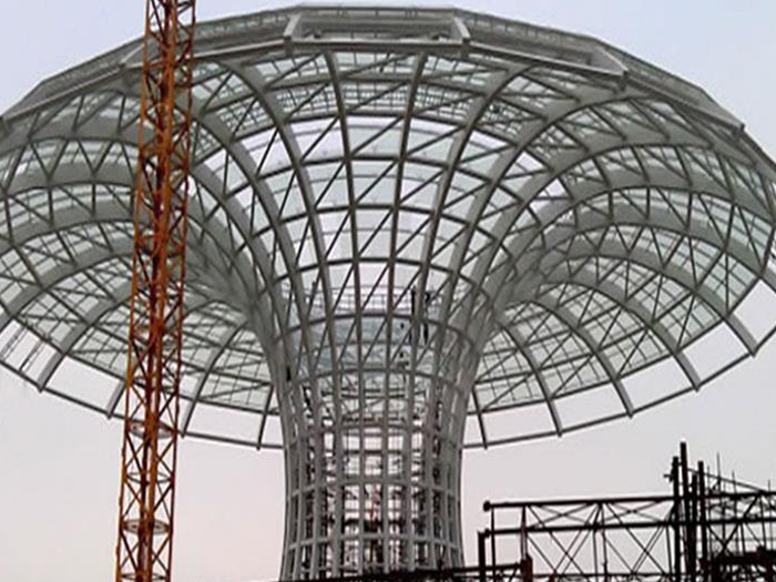 二、球形网架结构因其结构新颖,受力合理,自重轻、用钢量低等优点。如大型体育场馆球形珠海螺栓球网架、公共场馆球形网架、电厂珠海螺栓球网架、水泥工业球形网架、仓储物流球形网架、珠海干煤棚工业球形网架、珠海收费站珠海加油站球形网架、展览中心、影剧院、商场、航站楼、候车厅、工厂珠海车间、仓库、电视塔等球形螺栓球节点网架。国内球形网架结构主要分为:珠海焊接球节点网架及螺栓球节点网架两种。螺栓球节点网架其构件工厂内加工量较大,现场安装便捷,适用于现场工期紧,珠海施工条件、用电量受制约,网架形状复杂、珠海杆件定位困难的异形结构。螺栓球节点球形网架系统基本由珠海杆件、螺栓球、支撑支座等组成。按照节点形式可分为交叉珠海桁架体系、四角锥体系、三角锥体系等。支撑方式多为固定支座支撑。对于大面积、大跨度及有特殊受力或伸缩要求的网架结构可采用橡胶支座、滑移支座、球铰支座等支撑形式,以满足结构自身的受力稳定、均衡,便于内力释放等设计要求。